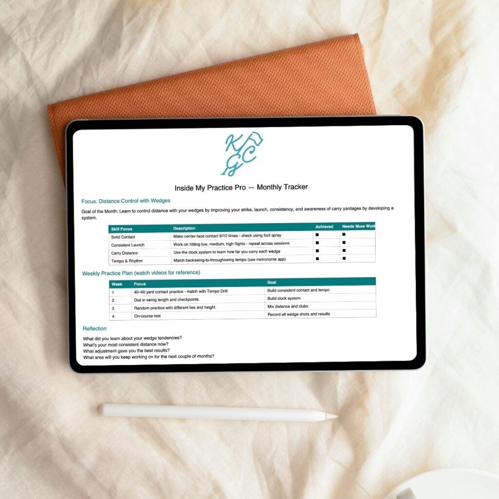 Train with a system that removes the confusion from practice. Instead of guessing what to work on, you’ll follow a clear monthly plan built around the scoring skills that matter most. Each week has a purpose, each drill has a reason, and every session builds on the last. You’ll know exactly how to improve, how to measure it, and how to take that progress to the course so your practice finally leads to predictable, long-term results.